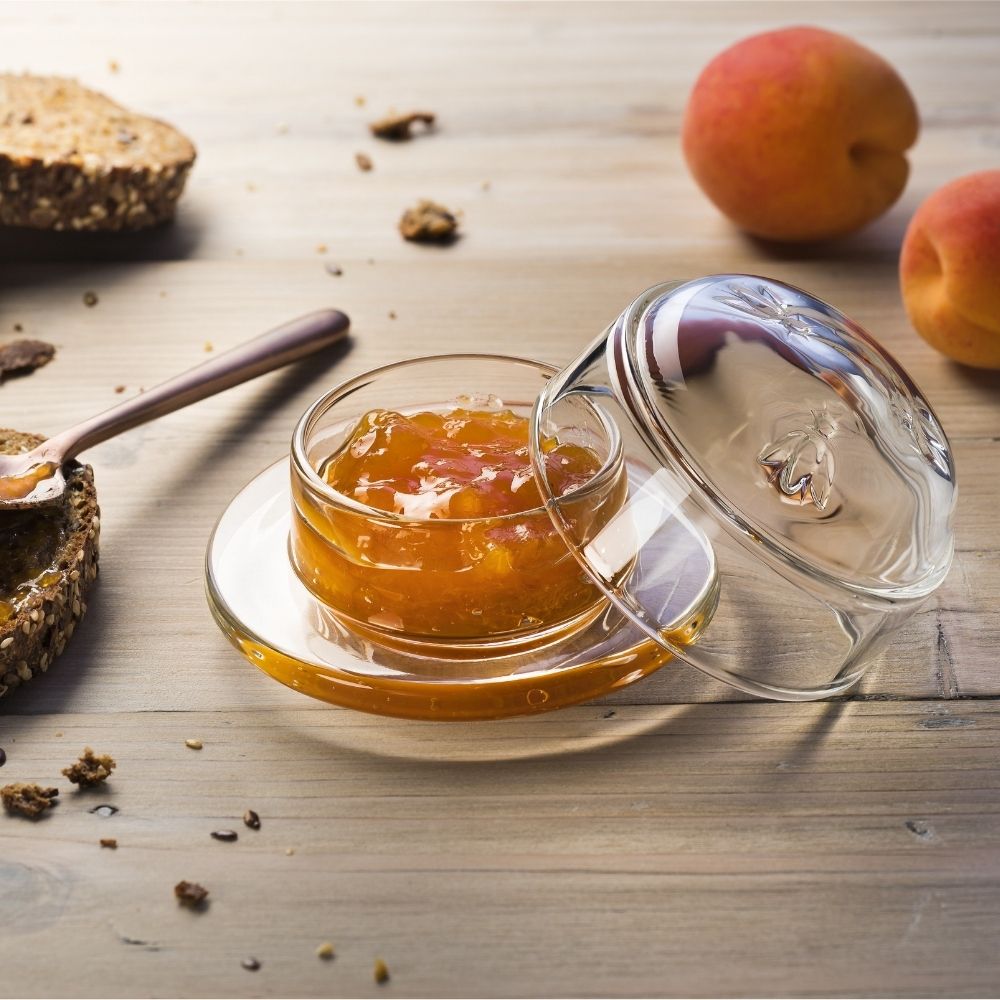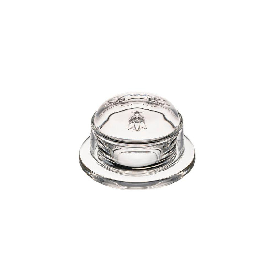Mantequillera de vidrio con el famoso diseño Abeja que era parte del escudo de brazos de Napoleón, utilizado para decorar telas, ropa y equipaje. La abeja es también uno de los símbolos del mágico sur de Francia.