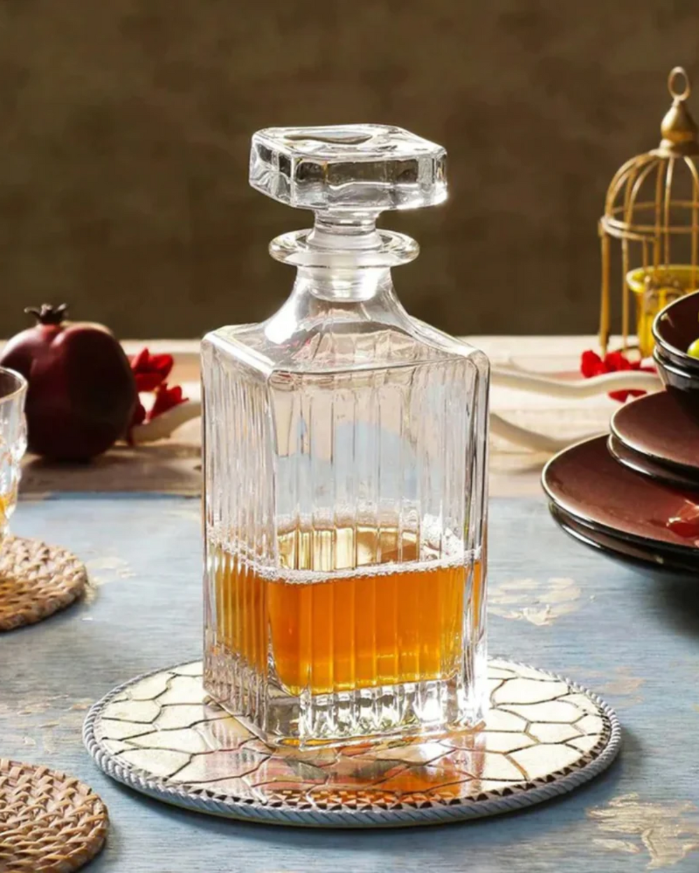 Elegante botella de Whisky perfecta para lucir en tu bar, que mejor que dejar el whisky conservado en una linda botella de cristal y tenerla en tu bar donde le dará un toque de elegancia.