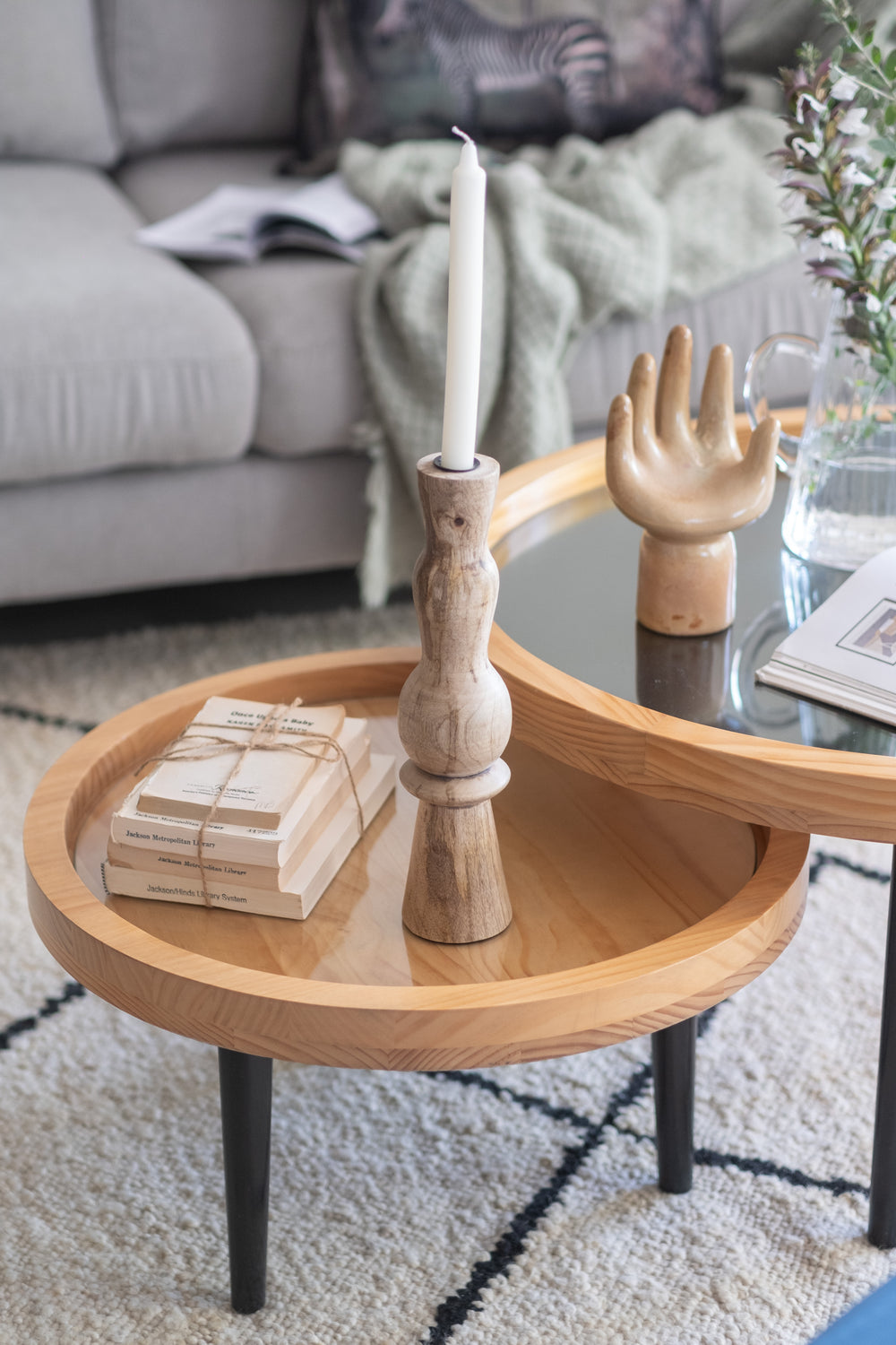 Este portavelas cónico de madera natural tallada a mano es una adición encantadora y acogedora a cualquier espacio. Su acabado en madera natural y su diseño tallado a mano añaden carácter y dimensión al espacio. Elaborado con una textura rica y orgánica, presenta un orificio en la parte superior para insertar una vela cónica, creando un brillo cálido. Úsalo como acento decorativo en la mesa del comedor, repisa, estante o buffet.