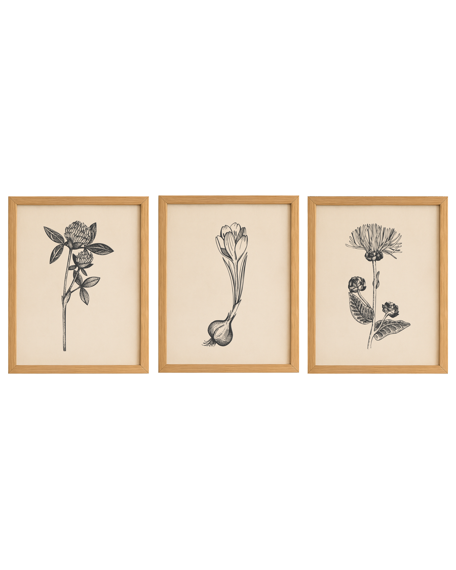 Las ilustraciones de tono negro, están impresas en tela cruda, lo que le da una profundidad adicional y calidez al espacio. Ideal para decorar muros y dar un toque cálido y sobrio.