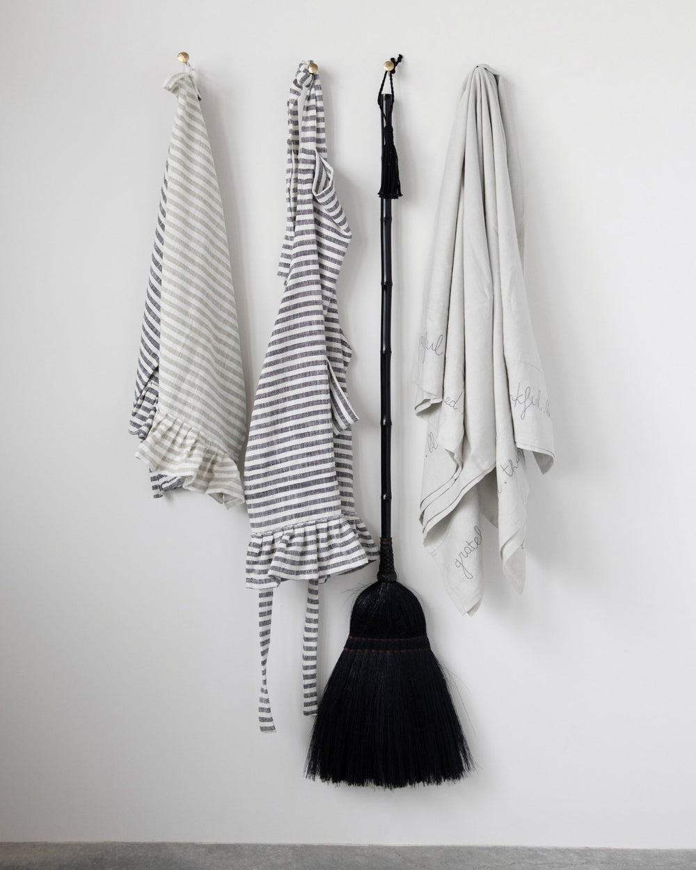 Parte de nuestra colección de textiles de cocina, este delantal 100% algodón, de cuerpo entero, con líneas en tono gris y vuelos en la parte inferior, es un esencial en tu cocina para evitar deteriorar tu ropa, con estilo natural y elegante.