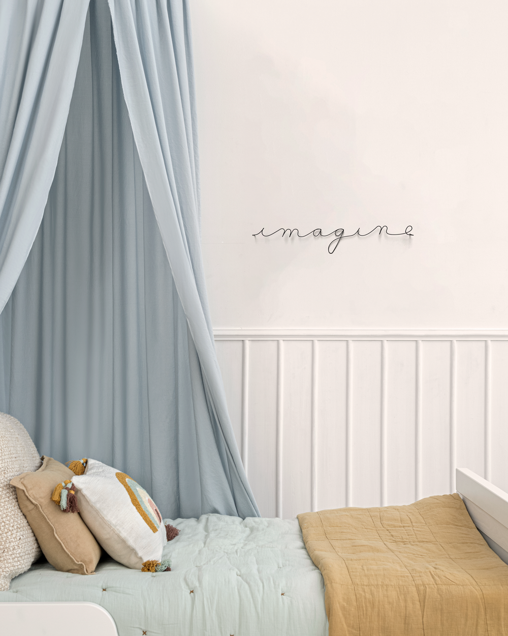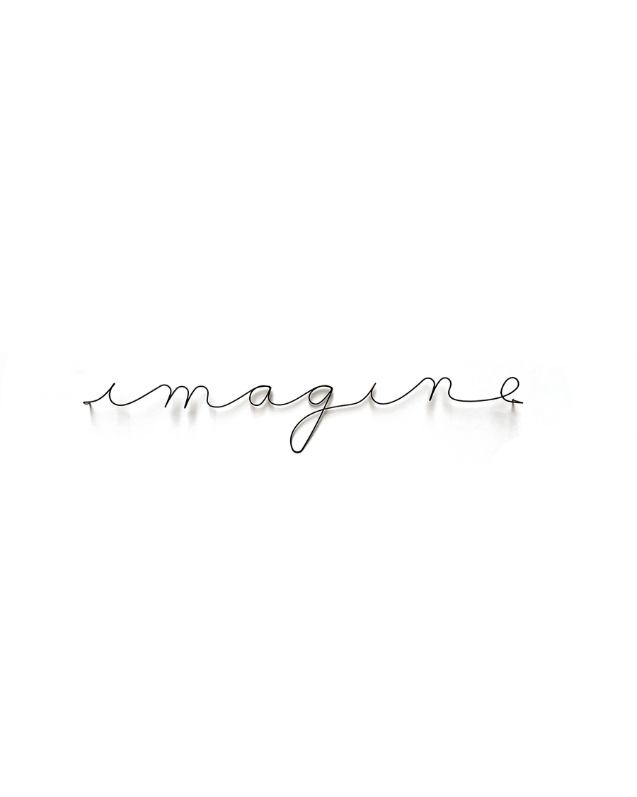 Colocar la escultura en la pared y marcar dónde estarán los dos extremos de las puntas. Hacer un pequeño orificio con un chinche o pin, para paredes blandas, o usar la punta más pequeña de un taladro para paredes duras. Insertar la palabra suavemente. Dejar una distancia entre la palabra y el muro para permitir que se proyecte una sombra.