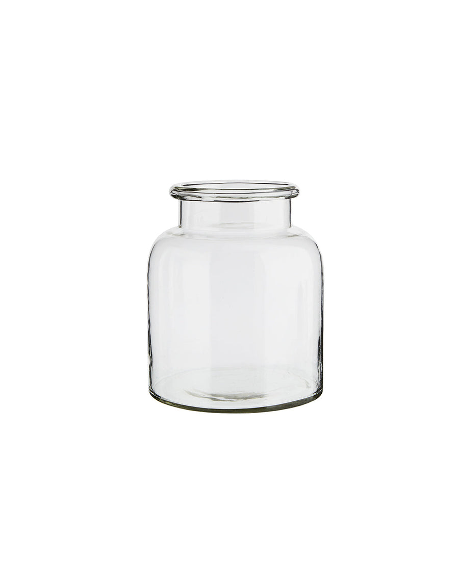 Haz una linda composición con estos floreros tipo botella de vidrio transparente con boca ancha que viene en 3 tamaños distintos.