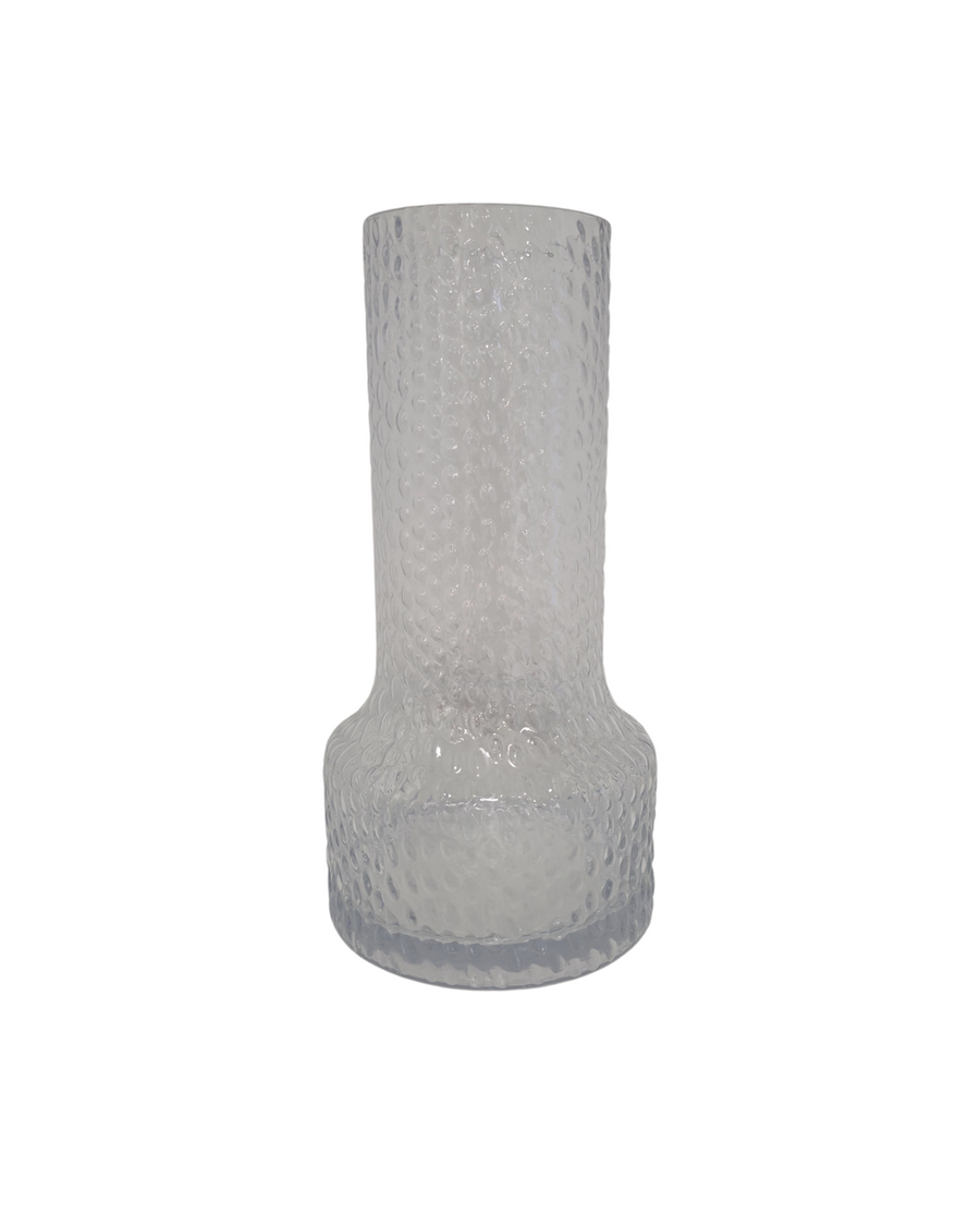 Florero de vidrio con textura. Ideal para dejar como decoración por si solo o ponerle las más lindas flores de temporada.