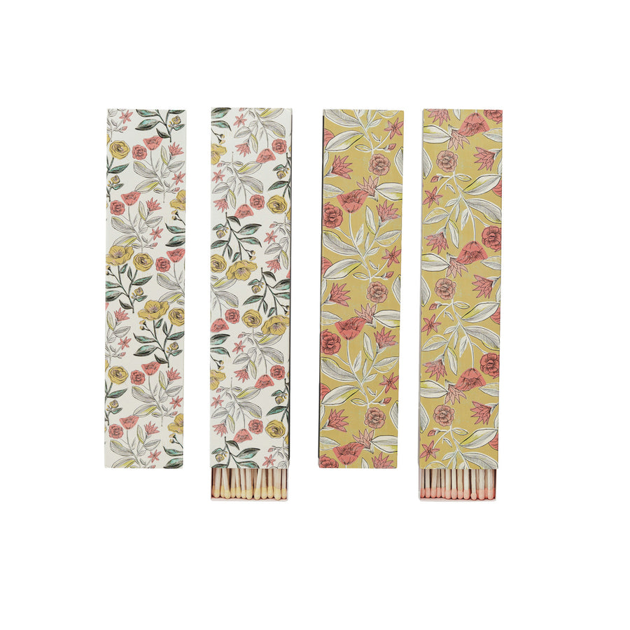 Fósforos de madera para chimenea en caja con diseño, para darle un toque especial a tu cocina, parrilla o llevar en tus panoramas al aire libre, en especial con este formato de fósforo harto más largo de lo habitual. Disponible en 2 diseños.