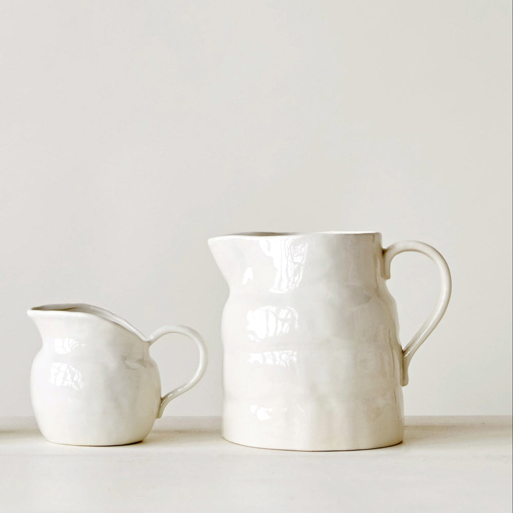 El estilo vintage de esta jarra blanca la convierte en un clásico para tu cocina. Luce un suave diseño ondulado.