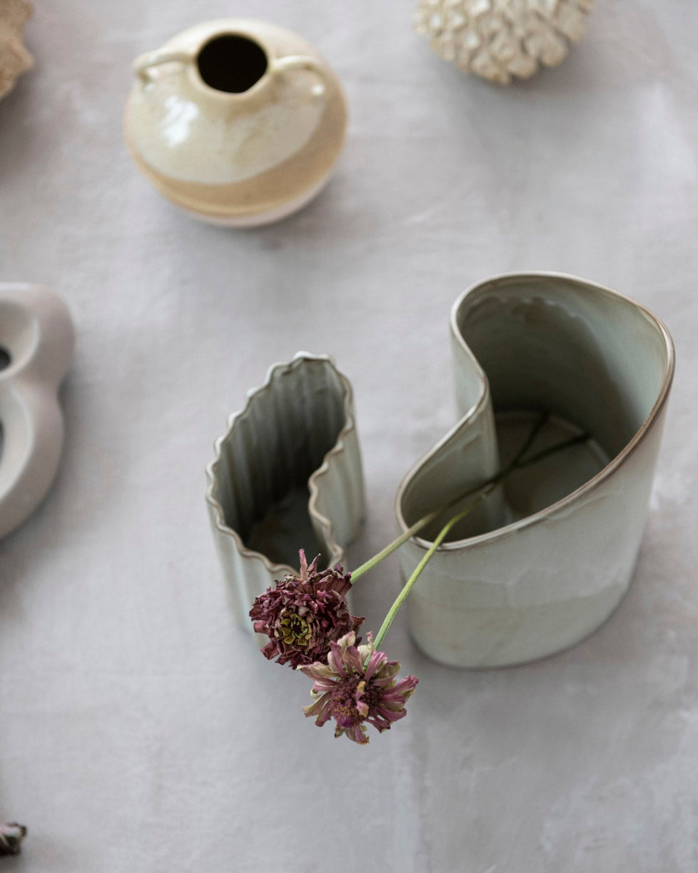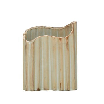Jarrón o Florero de cerámica gres en tono beige, con detalles facetados en su contorno y de forma irregular. Sin duda un elemento elegante y original para decorar tus espacios. La forma orgánica y natural predomina, creando una armonía con cualquier espacio. Puedes utilizarlo como complemento decorativo, florero o incluso como contenedor para tus utensilios de cocina.