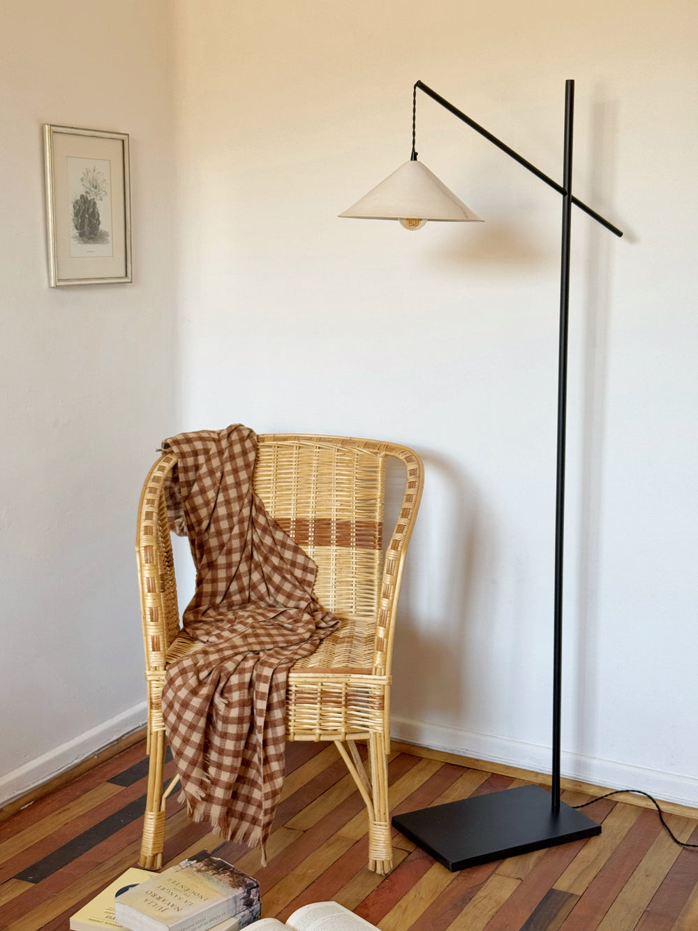 Lámpara Pie de Cerámica gres color blanco y soporte de fierro.
