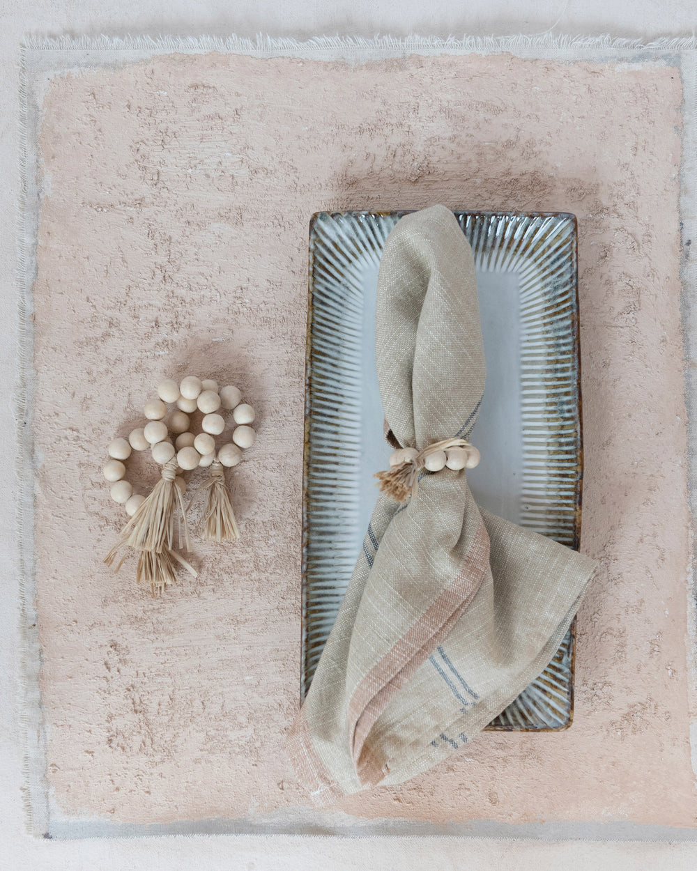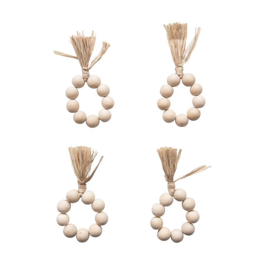 Pack de 4 anillos para servilletas de madera con borla de rafia.