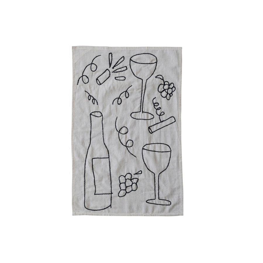 Paños de cocina de algodón bordado en tono plomo, con inspiración en el vino.