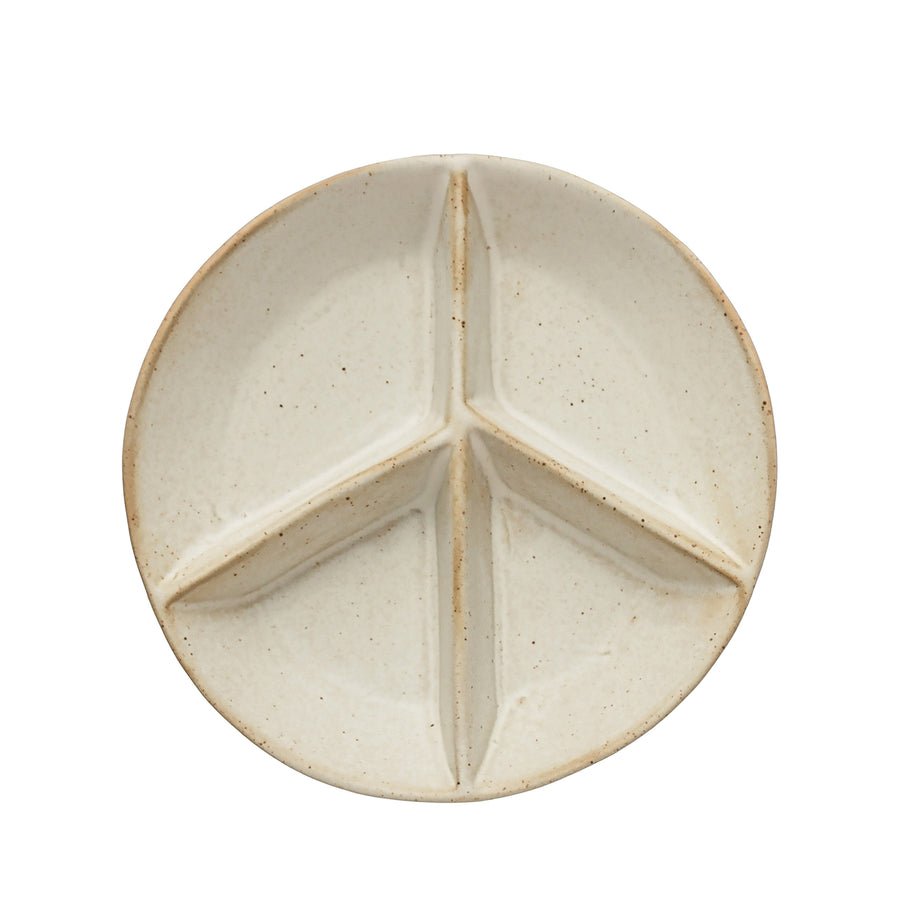 Plato de cerámica esmaltada con símbolo de la paz, dividido en 4 secciones.