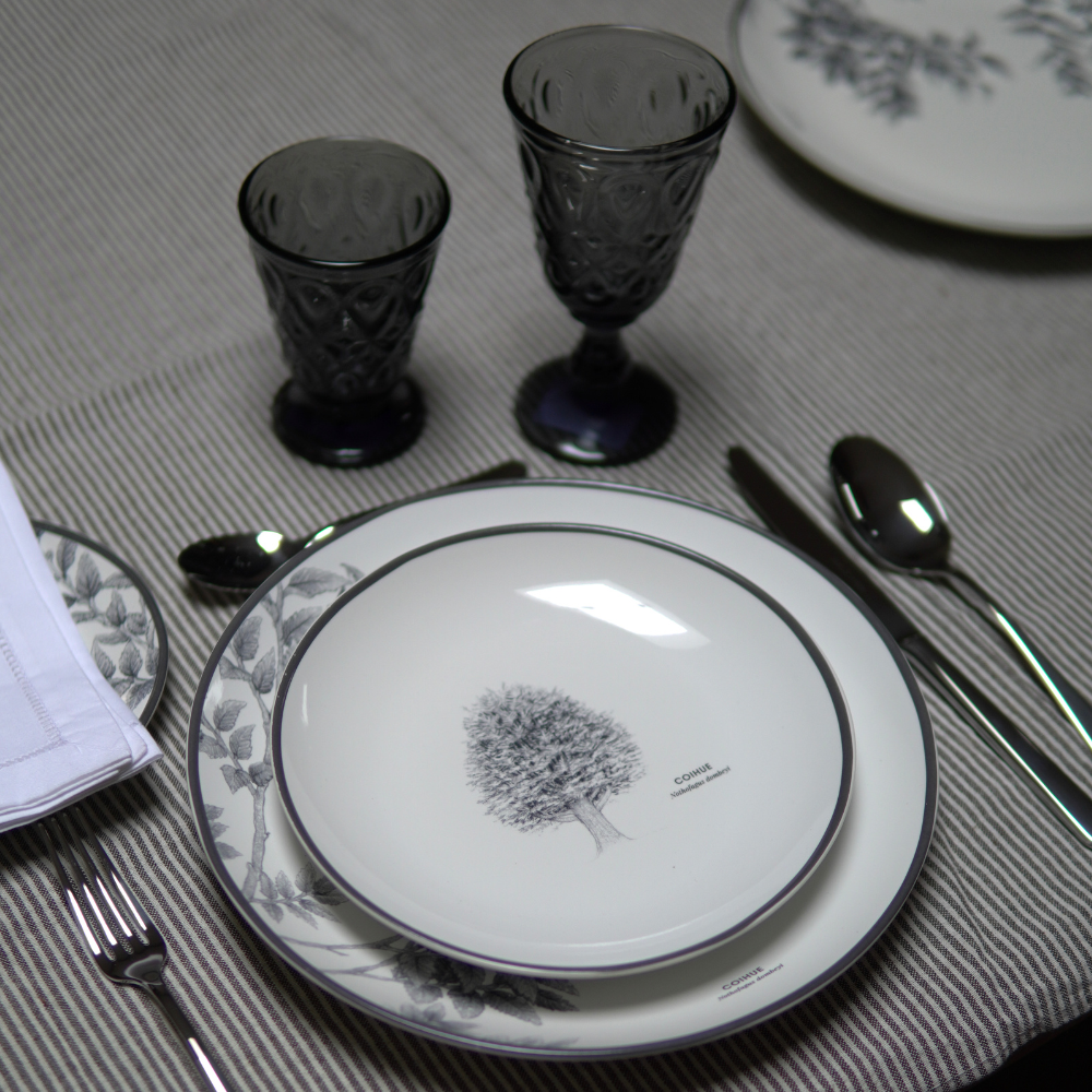 Encuentra la mejor combinación de diseño y Calidad en esta vajilla Klapp al mezclar a la perfección con un maravilloso diseño de uno de los arboles mas representativos del Sur de Chile, el Coihue.