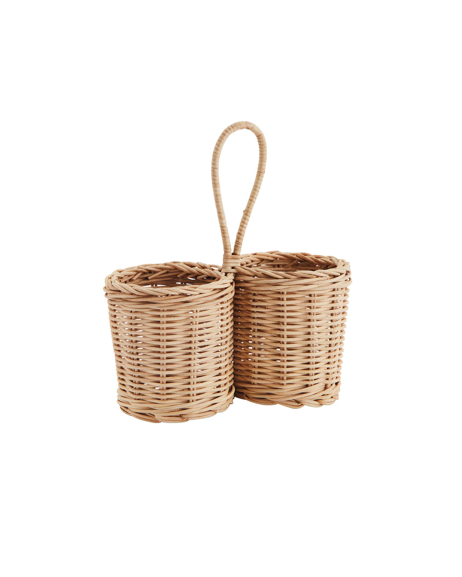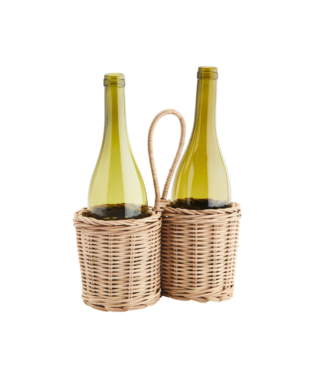 Traslada y exhibe tus botellas en una mesa o quincho para tus eventos con este porta botellas de rattan con 2 divisiones. El mango te permite transportarlas fácilmente. No solo sirve para botellas, puedes poner utensilios o cubiertos de una forma muy linda en tu mesa.
