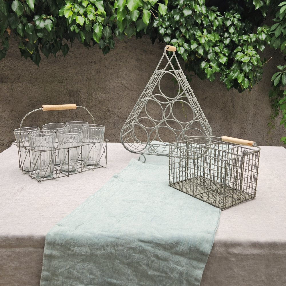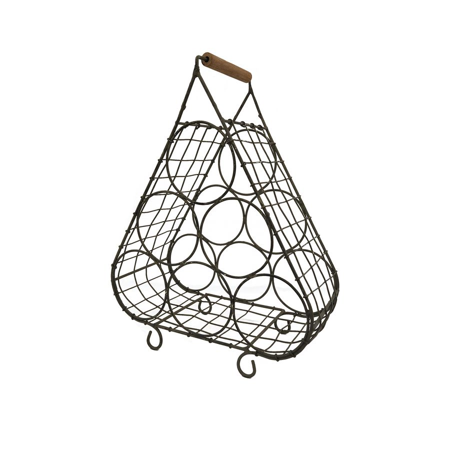 Porta vinos o botellero metálico, con manilla de madera. Es un complemento perfecto para tu cocina, comedor, o quincho, para organizar tus bebidas y botellas de vino en su posición horizontal.