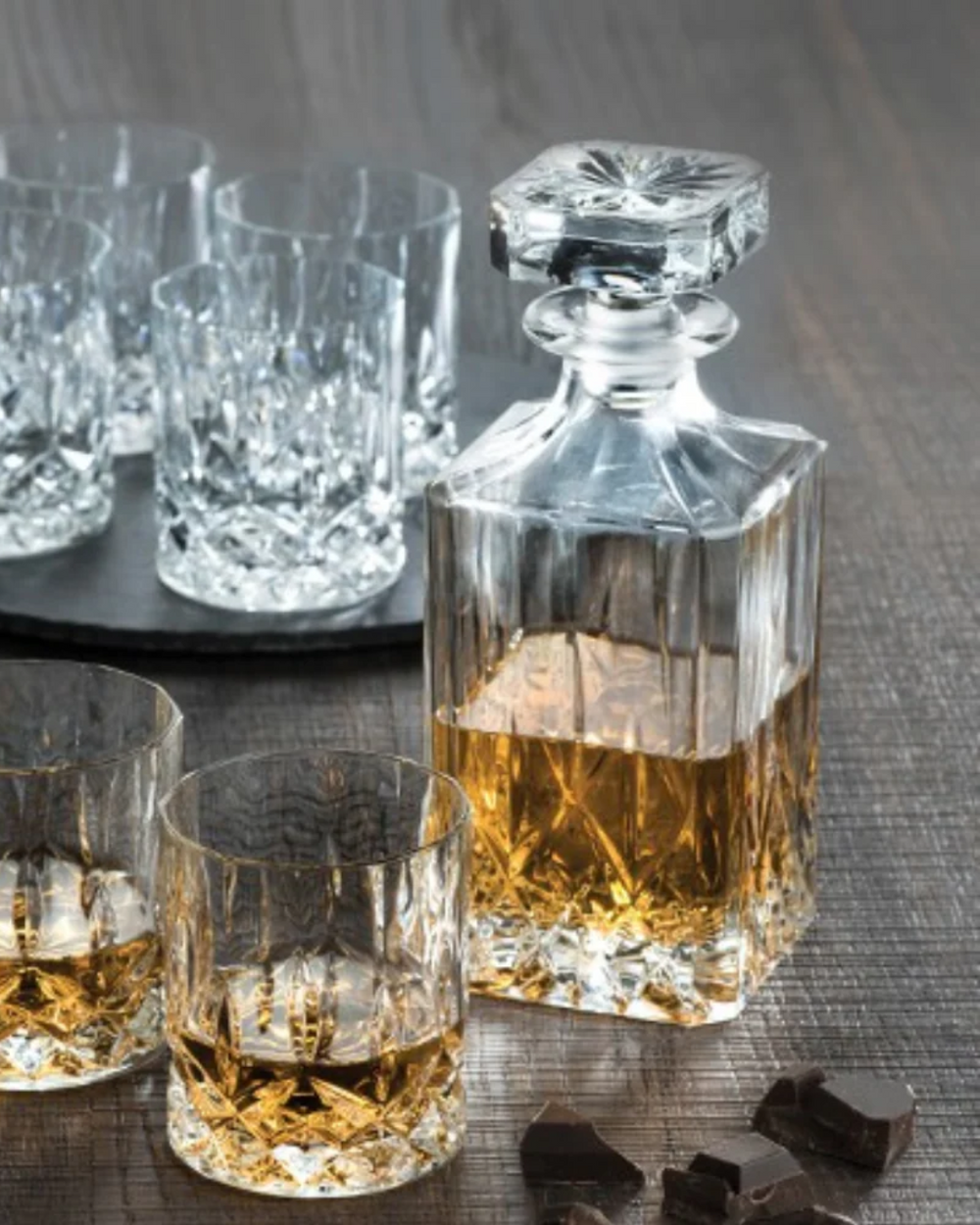 Elegante botella de Whisky perfecta para lucir en tu bar, que mejor que dejar el whisky conservado en una linda botella de cristal y tenerla en tu bar donde le dará un toque de elegancia.
