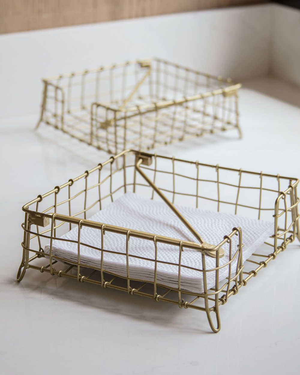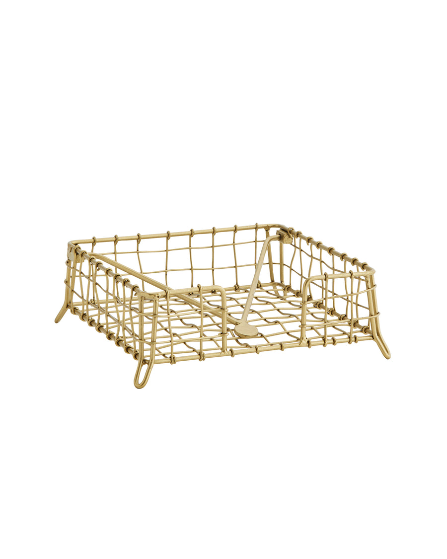 Un servilletero práctico y estiloso. Añade dorado a tu mesa y el detalle de la malla metálica que viene con tope para que no se vuelen las servilletas al aire libre.