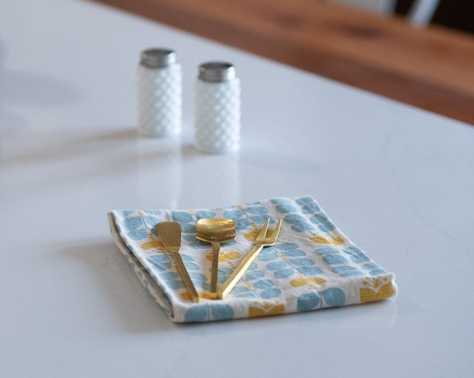 Set de 3 accesorios para aperitivo de color dorado y efecto martillado.