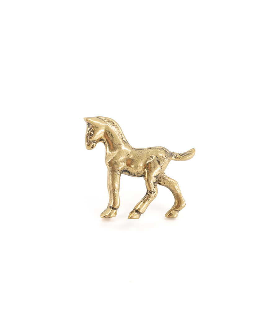 Tirador dorado con forma de caballo, disponible en 2 orientaciones, ideal para hacer par en una cómoda o de forma individual en cajoneras.