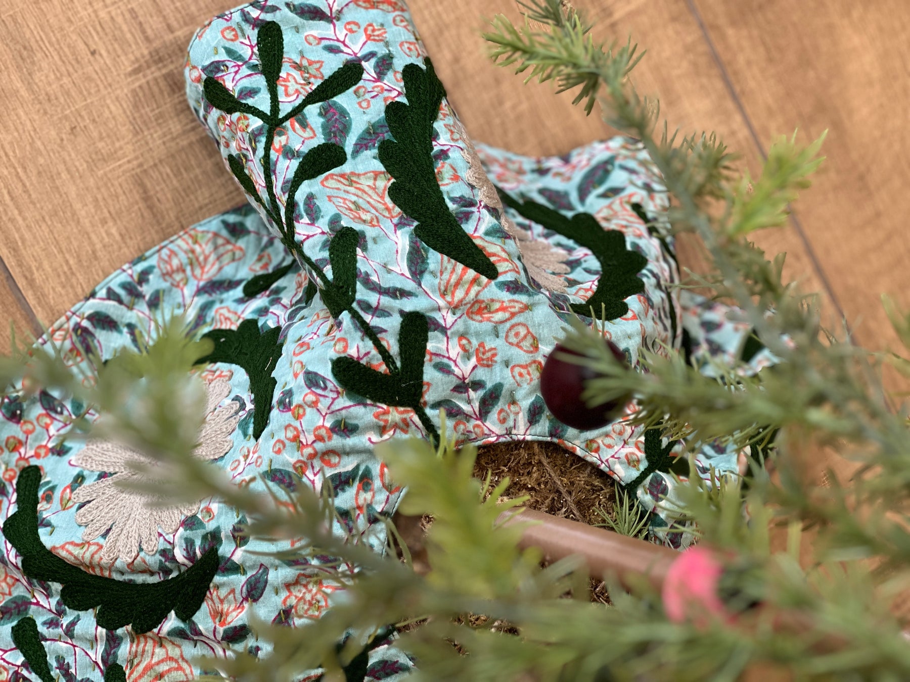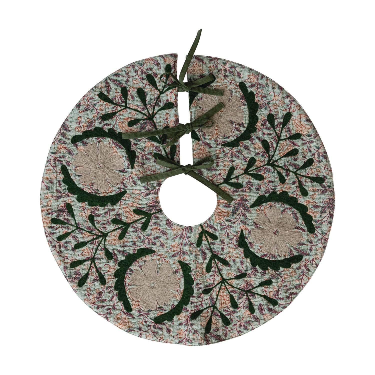 Faldón para tu árbol con un lindo diseño estilo suzani y bordado a mano. Es una obra maestra que le añadirá un toque aún más especial a tu decoración navideña.