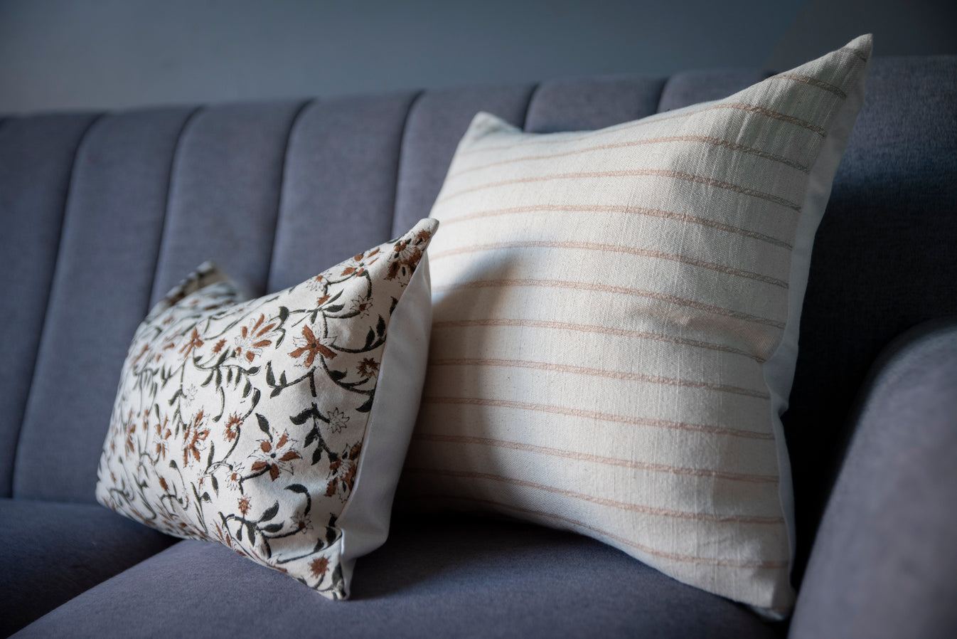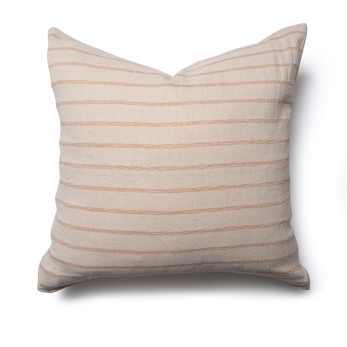 Biel Camel es una funda de cojín de algodón color crudo con rayas camel por el frente, y sólido color crudo por atrás. Tejido por artesanos expertos en Tailandia.