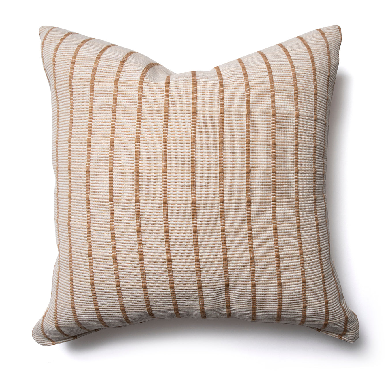 Jan Lumbar es una funda de cojín de algodón, con textura acanalada, rayado en color crudo y rayas café claro por uno de sus lados y café claro con rayas crudo por el otro. Tejido por artesanos expertos en Tailandia.