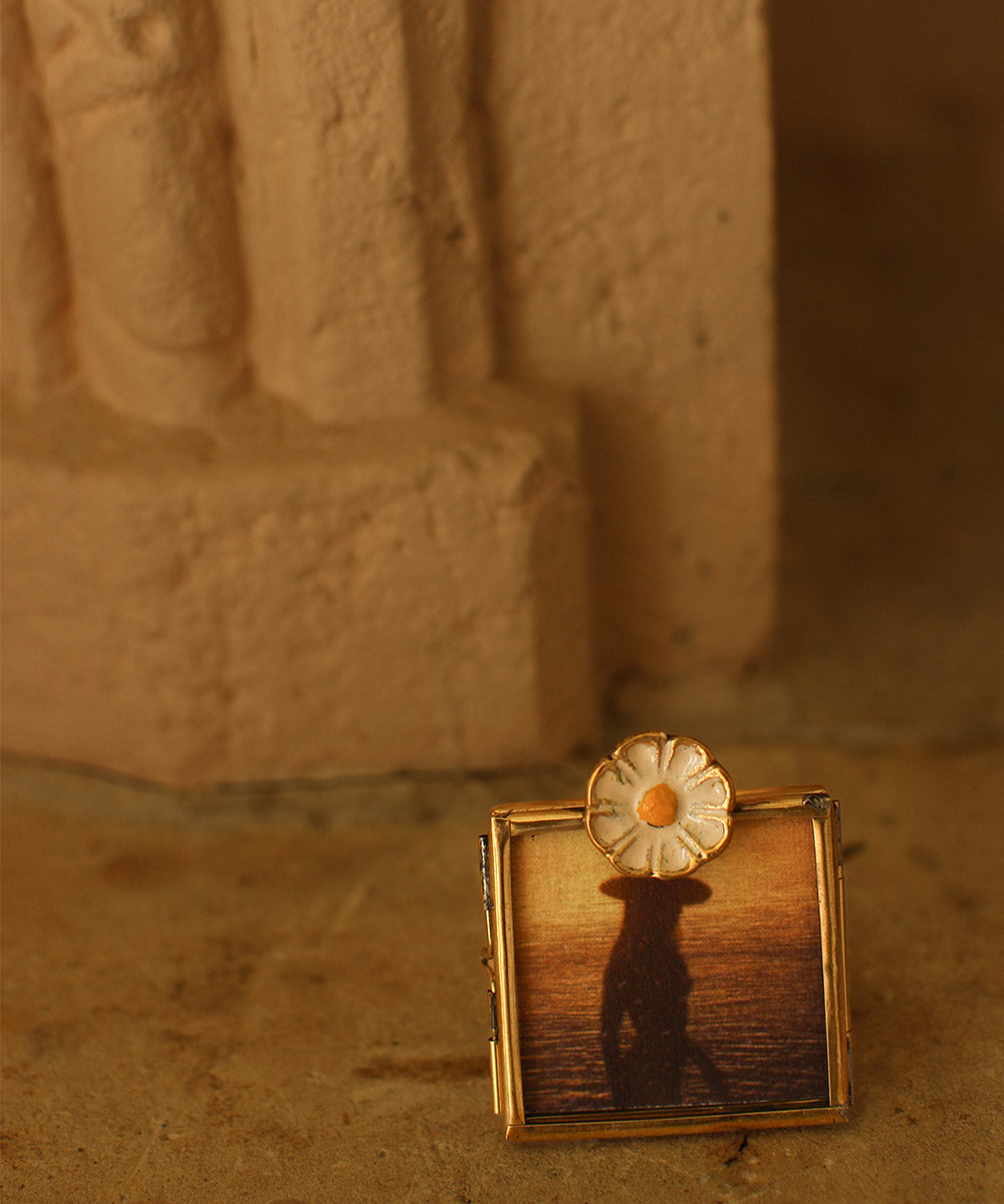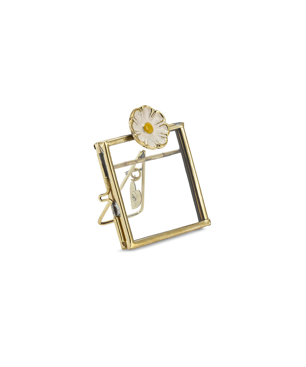 Dale un toque alegre a tus espacios con el encantador mini marco de fotos Daisy. Este mini marco artesanal está hecho de bronce reciclado y vidrio transparente, y adornado con una encantadora margarita: una flor que simboliza la sencillez, el amor y la alegría.