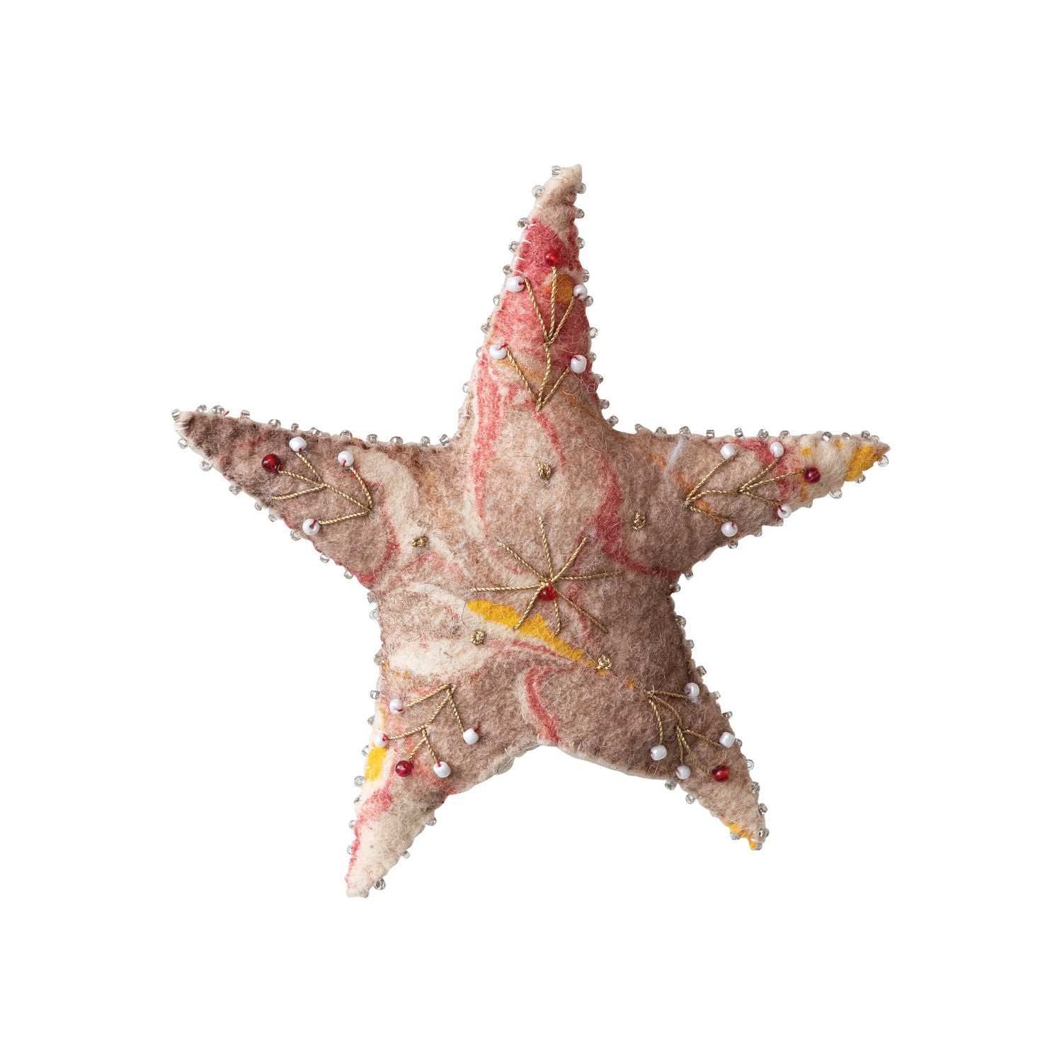 Estrella para poner en la cima de tu árbol navideño hecha de fieltro y con aplicaciones bordadas.