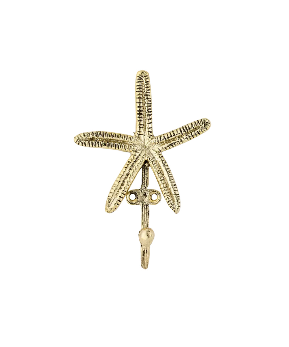 Dale un toque costero a tu hogar con esta percha, una pieza funcional y decorativa diseñada para añadir elegancia y encanto a cualquier lugar. Fabricado en latón y con forma de estrella de mar, este llamativo gancho de pared presenta un acabado dorado pulido que llama la atención al instante. Es compacto, pero a la vez lo suficientemente llamativo como para destacar en cualquier pared.