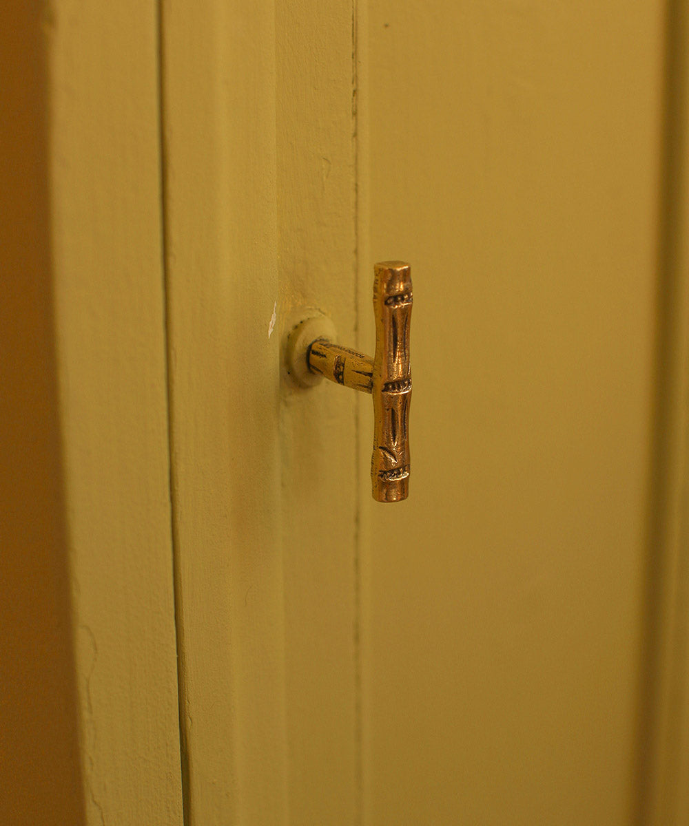 Tirador dorado inspirado en la naturaleza del bambú.