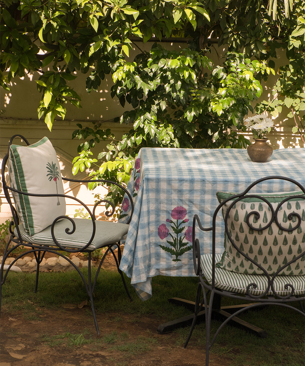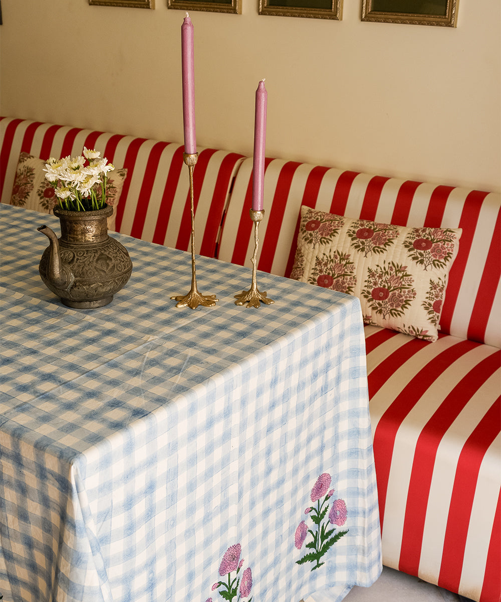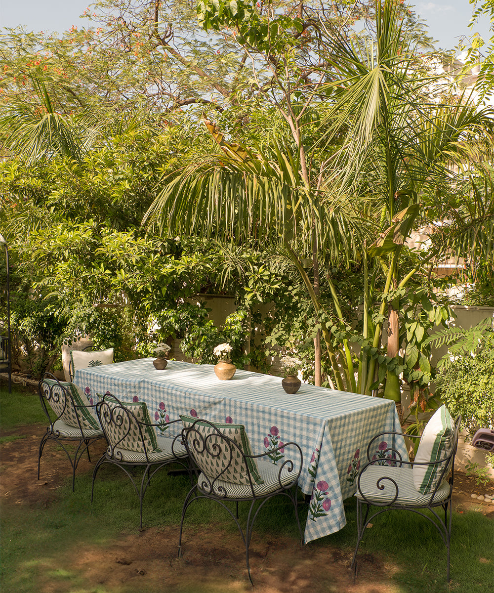 Diseño fresco con detalles florales, el mantel Iris presenta un clásico estampado de cuadros azules y blancos que transmite tranquilidad y elegancia. Un alegre borde floral rosa le da un toque alegre, convirtiéndolo en el centro de todas las miradas.
