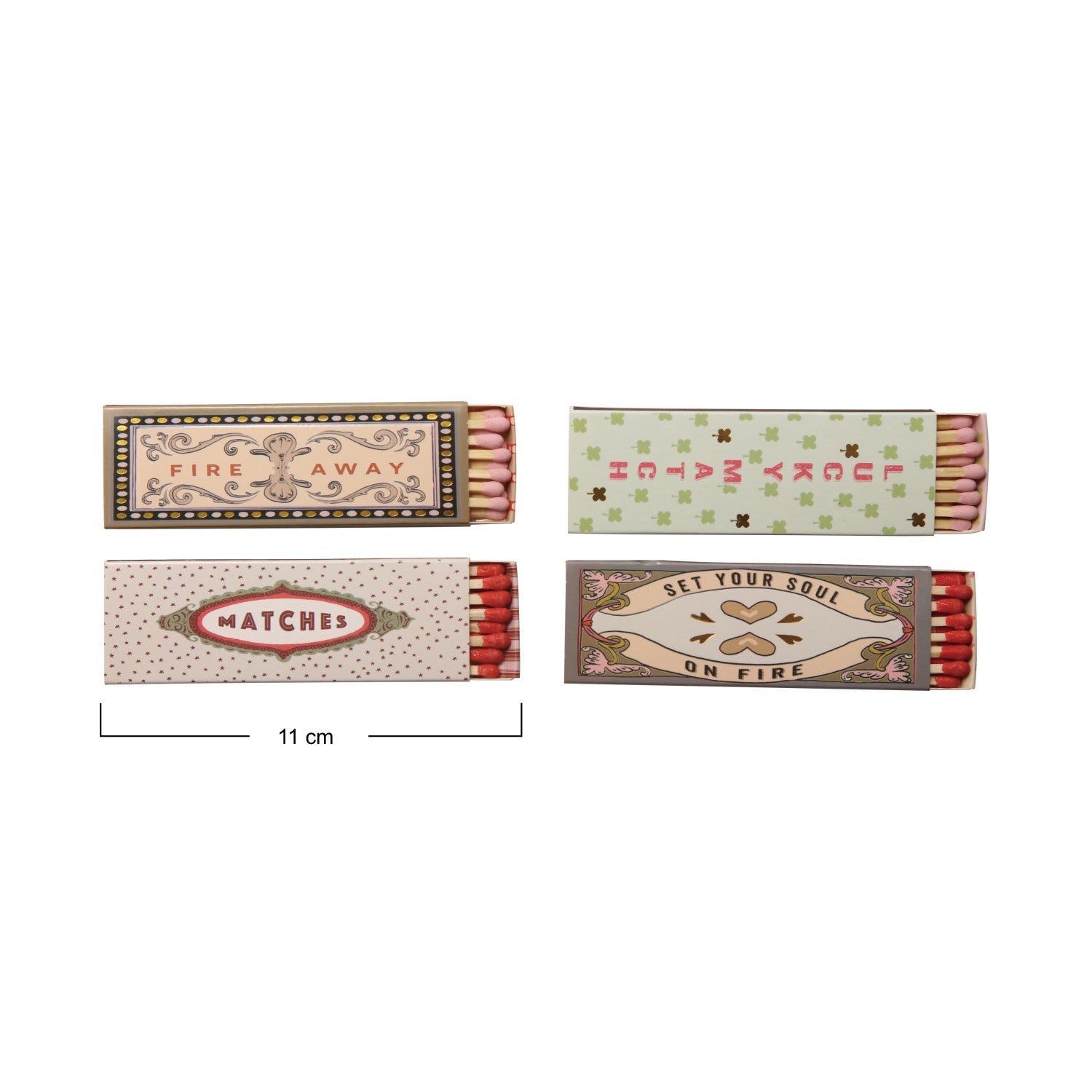 Fósforos de madera en caja con mensaje, para darle un toque especial a tu cocina, parrilla o llevar en tus panoramas al aire libre. Disponible en 4 diseños.