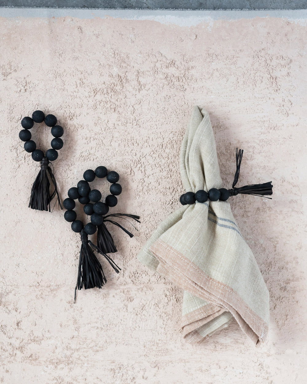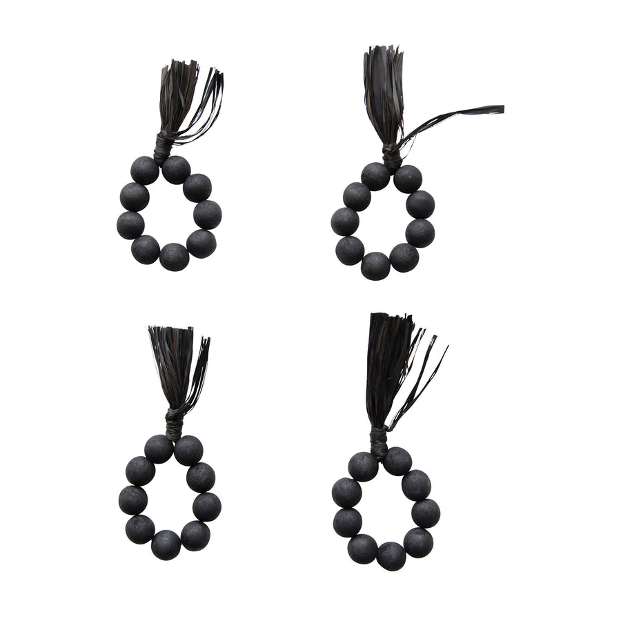 Pack de 4 anillos para servilletas de madera con borla de rafia.